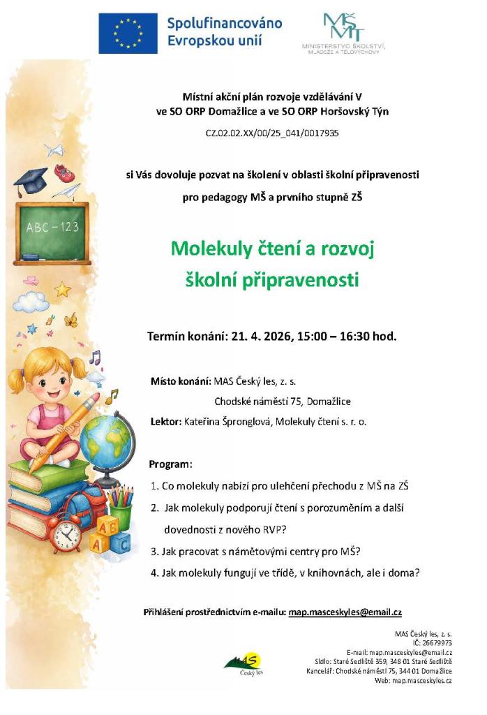 Školení nabídne inspiraci, sdílení zkušeností z praxe i konkrétní podněty pro práci s dětmi v prostředí MŠ i na 1. stupni ZŠ.